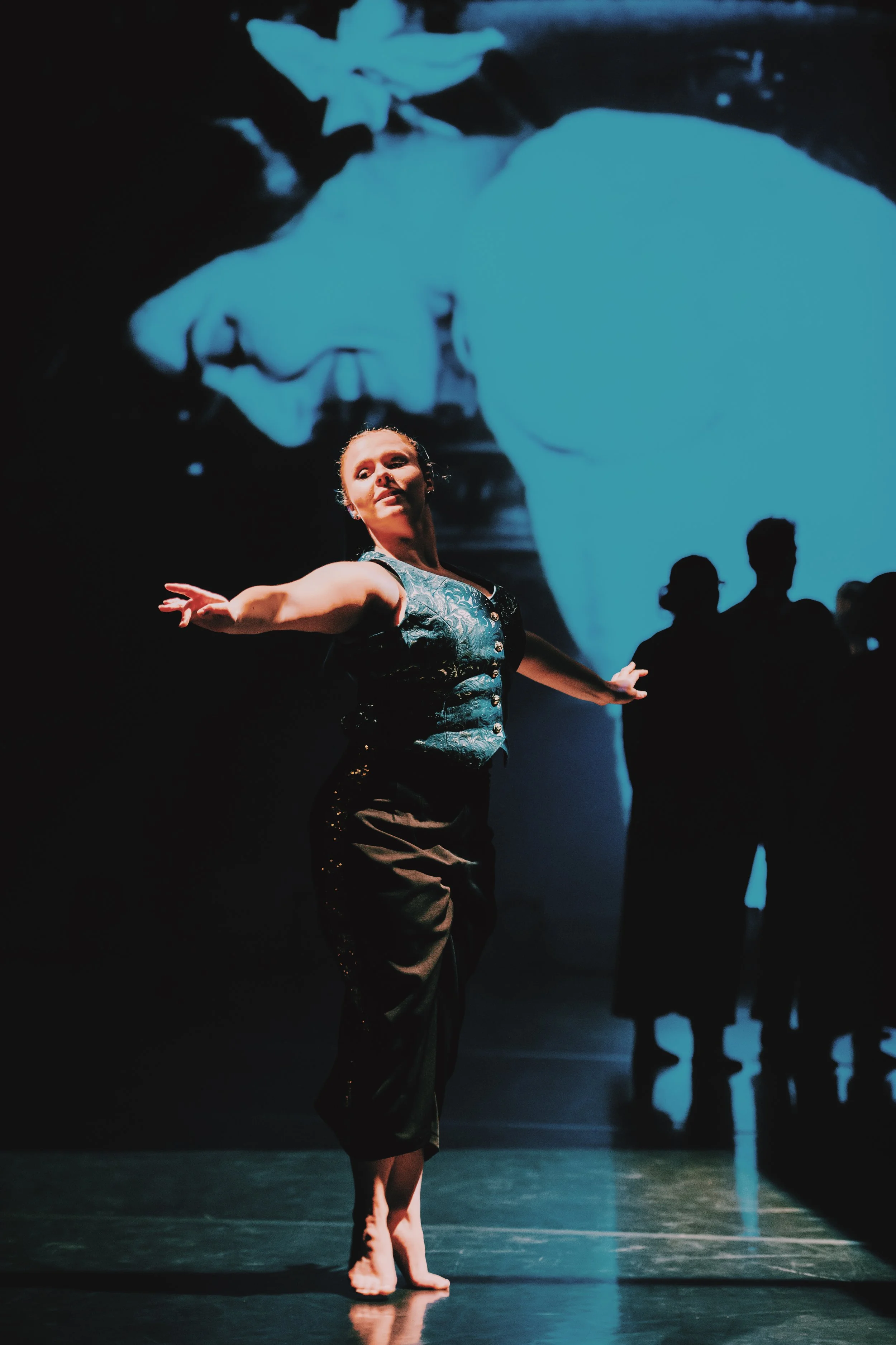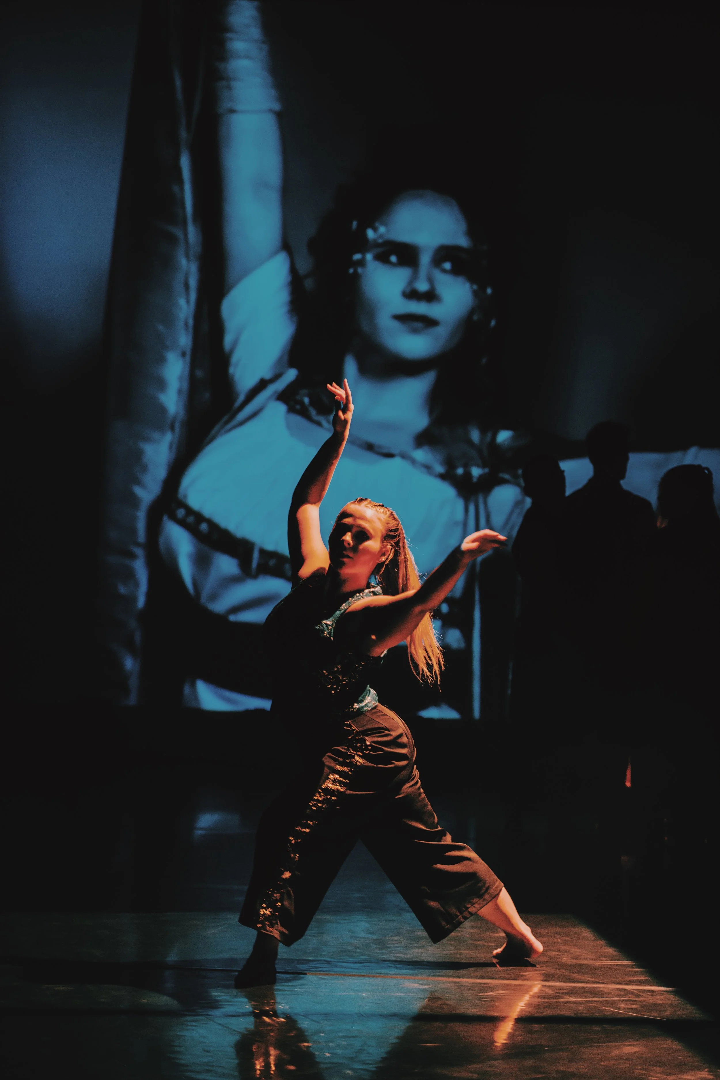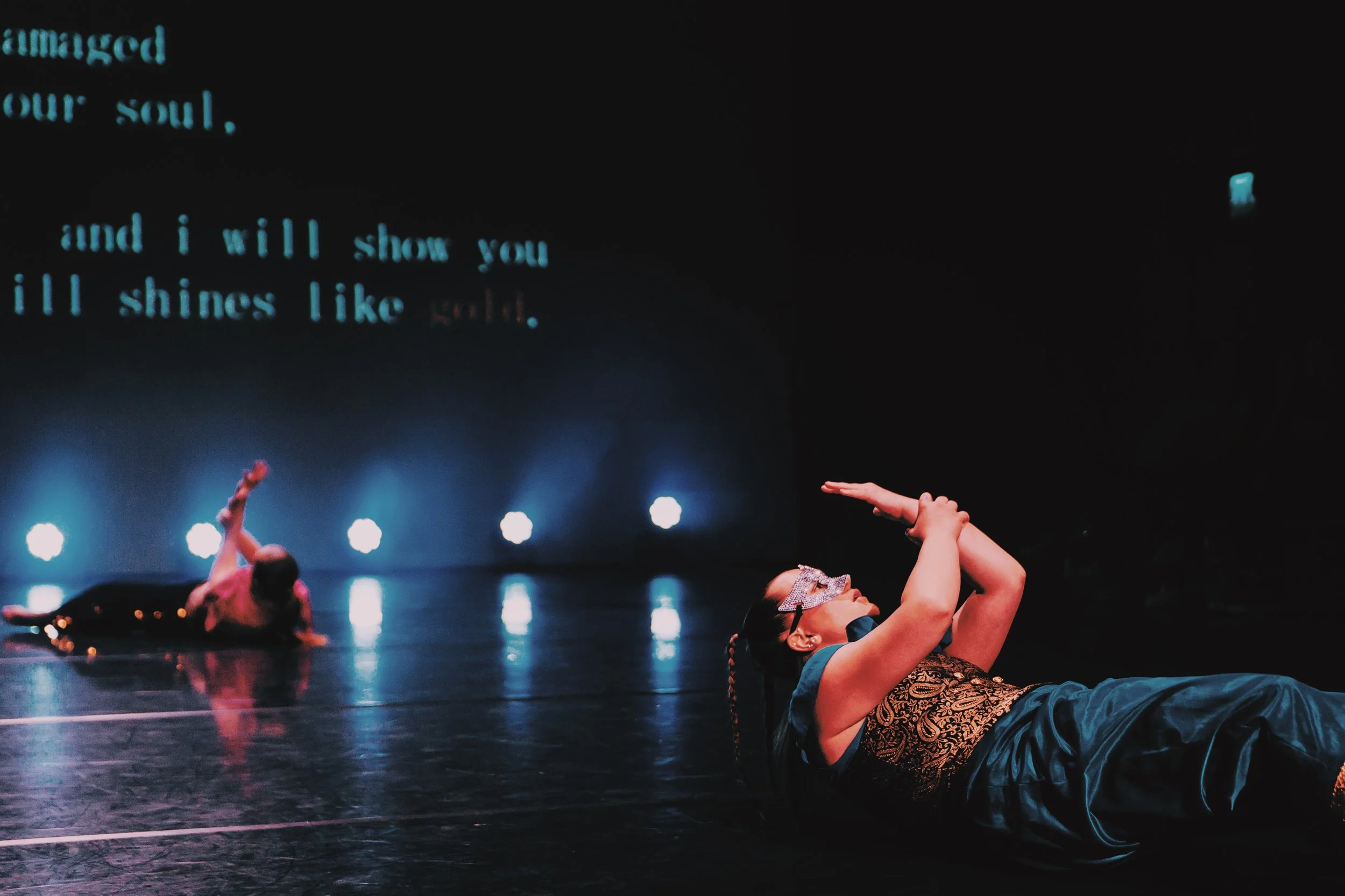 i was fully immersed in all aspects of show creation; including choreography, teaching, meetings, rehearsals, behind the scenes work, sound production, projection creation & ultimately tech-ing the show from the tech booth. it was very full on but such a joy, and i found it really fulfilling to slip in and out of different roles whether that be choreographing, creating and teaching my own piece (which you can see and read more about here.), conceptualising different elements of the work, managing photoshoots, creating the soundscape for the production, mapping out the storyline of the show with jane, helping to cue lights & sound or designing & editing the projection - it was such an amazing opportunity to really test all facets of who i am as a dance artist. i love & adore so many genres and aspects of the dance world so working on something so all encompassing like this was so special as i got to dip into so many areas of creating, producing & managing.